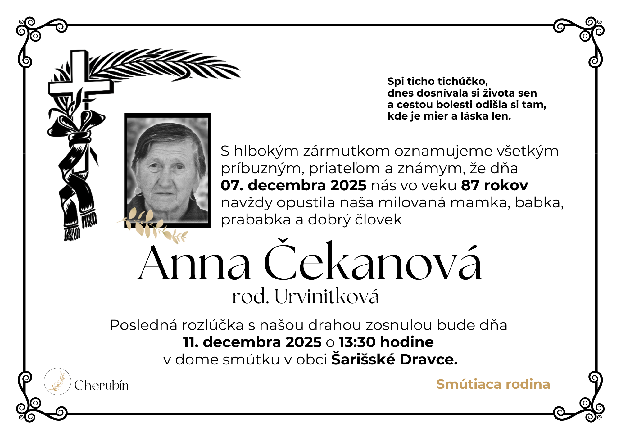 V mene celého kolektívu Cherubín Pohrebné služby vyjadrujeme úprimnú sústrasť najbližším pozostalým. 🕯️