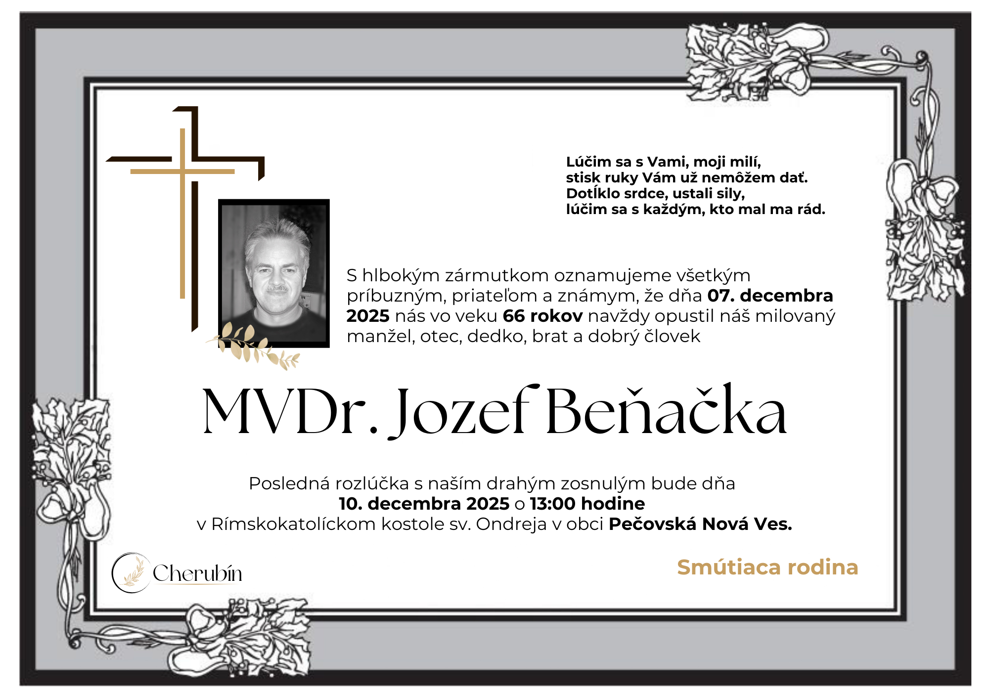 MVDr. Jozef Beňačka 29.10.1959 - 07.12.2025