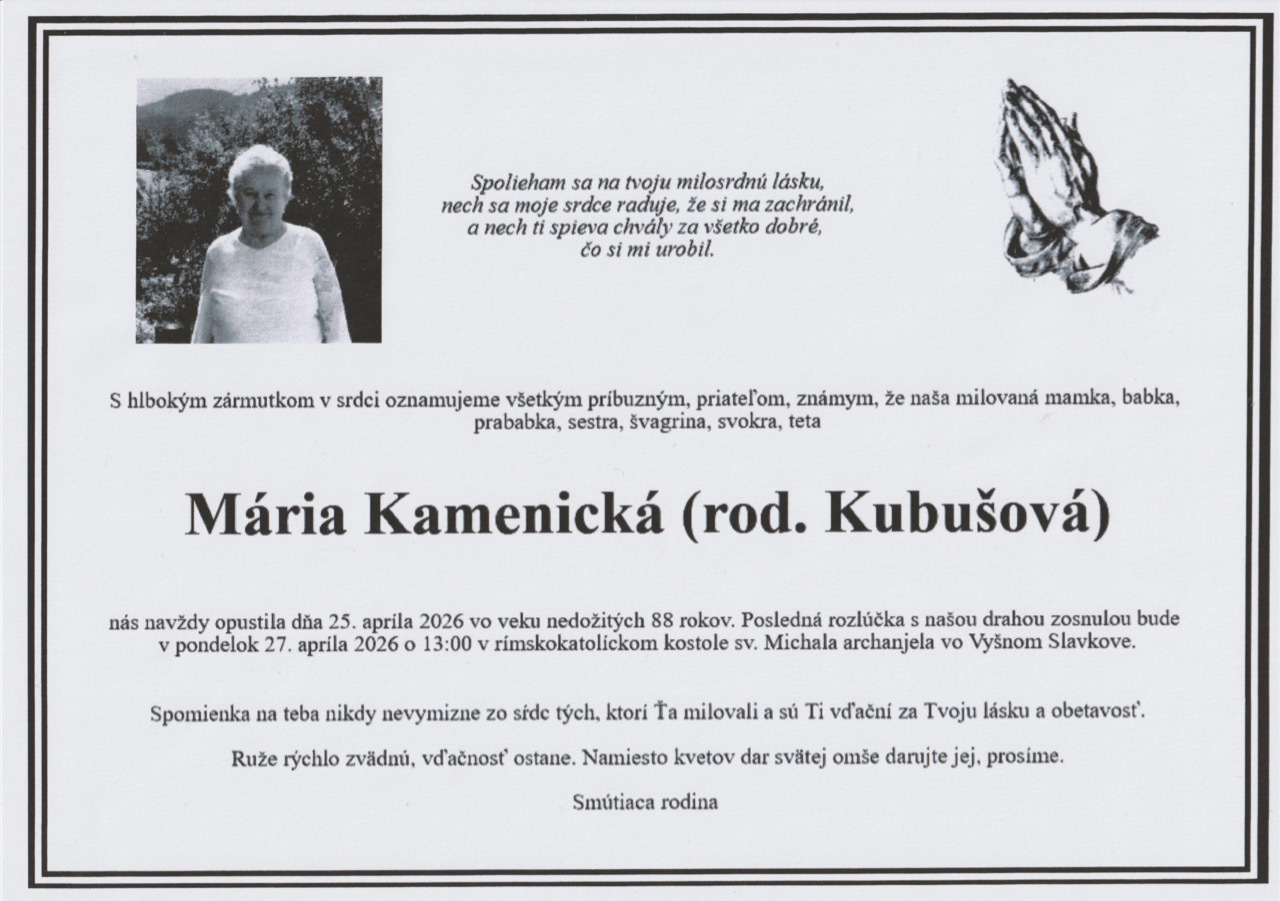 Spomienka na Teba nikdy nevymizne zo sŕdc tých, ktorí Ťa milovali a sú Ti vďační za Tvoju lásku a obetavosť.